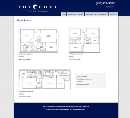 This site uses WordPress as a Content Management System. Custom Theme Developed for The Cove at Northshore, using the Twitter Bootstrap Framework. Custom Map was also created by me using the Google Places and MAP APIs.